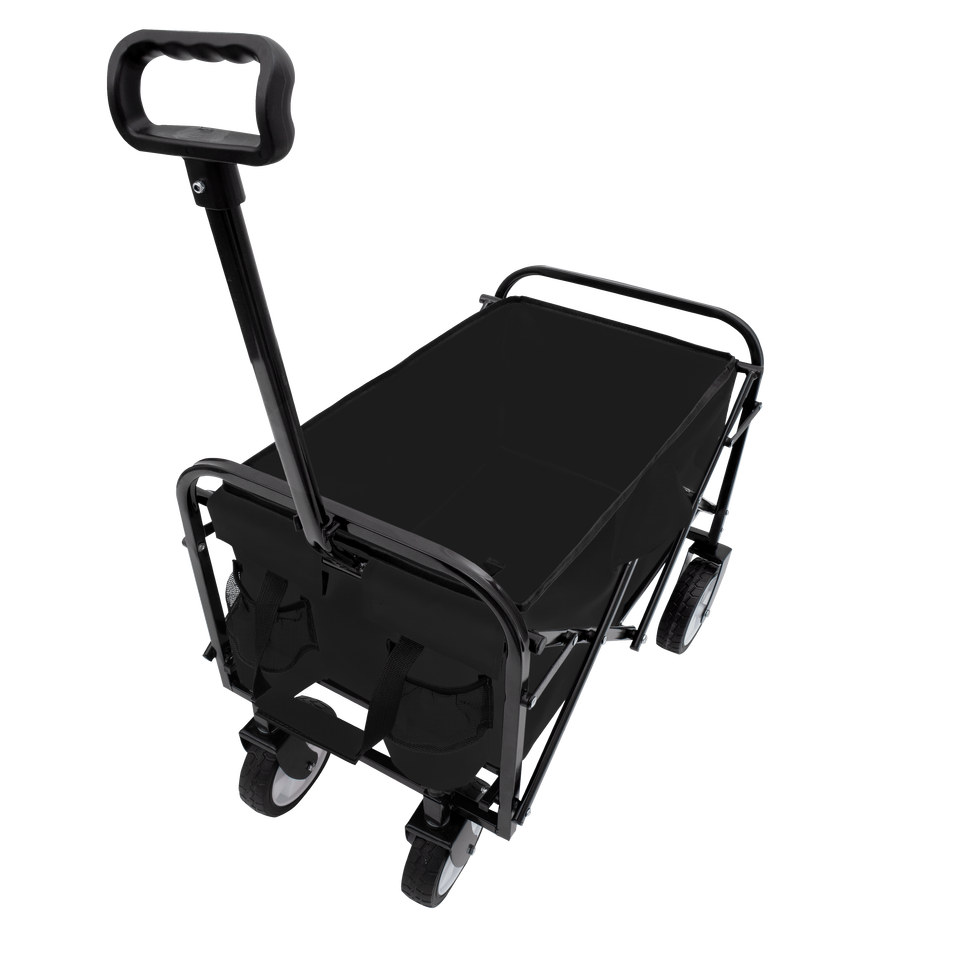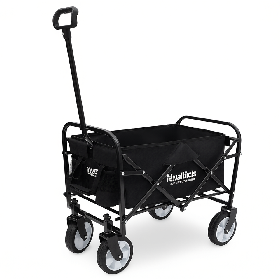 Carrito Plegable Walticis de 4 Ruedas, Carrito Utilitario Plegable para Exteriores, Camping, Senderismo, Compras, Estructura de Metal Negro