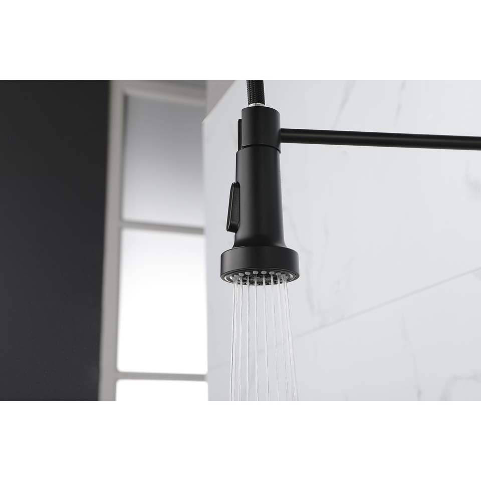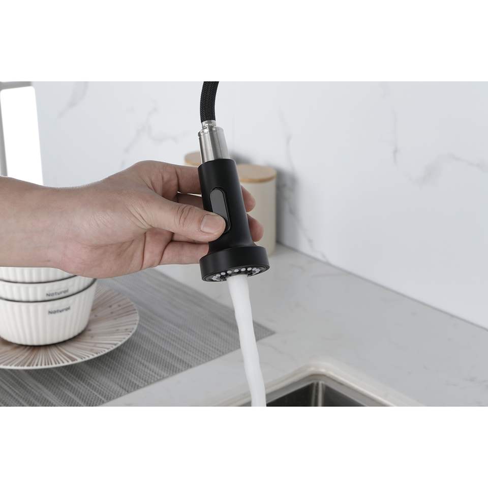 Grifo de cocina rociador de tracción negro mate comercial DB, grifo de fregadero de un solo orificio de aleación de Zinc de un solo mango de acero inoxidable