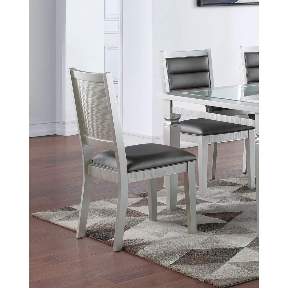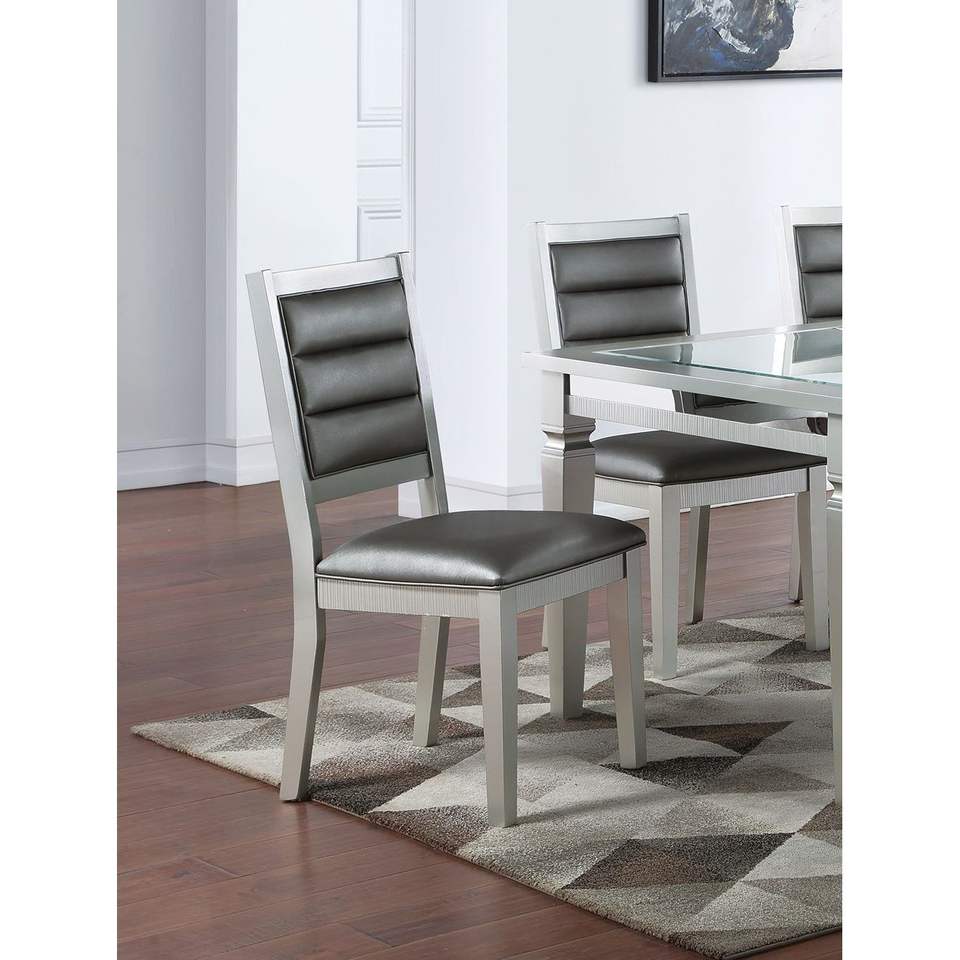 Juego de 2 sillas de comedor de color plateado contemporáneo DB, respaldo de cojín antiguo con asiento de piel sintética para comedor