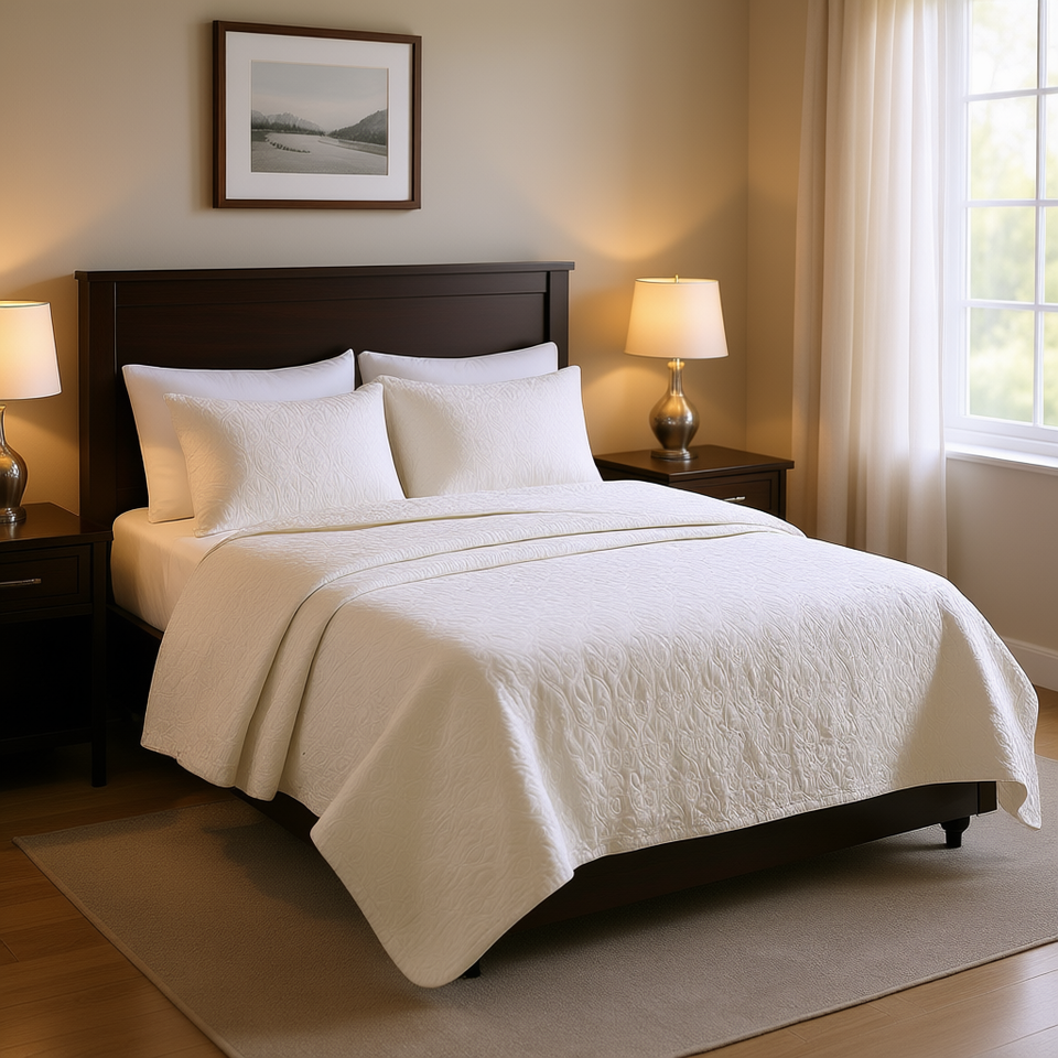 Juego de Edredón Reversible Crema, Tamaño Queen, 3 Piezas, Diseño Vintage, Relleno de Poliéster, Estilo Clásico, para Todas las Temporadas