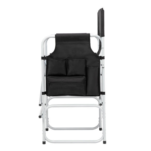 Silla de director DB 103*60*499cm 120kg Capacidad Superficie de tela negra Tubo de hierro redondo rociado de plástico Plata Blanco Cómodo"