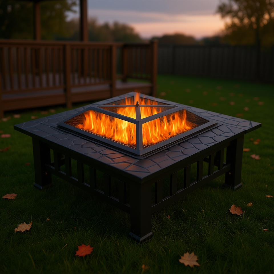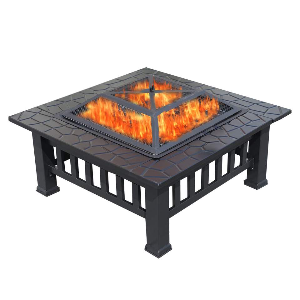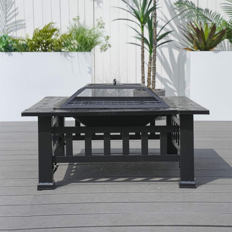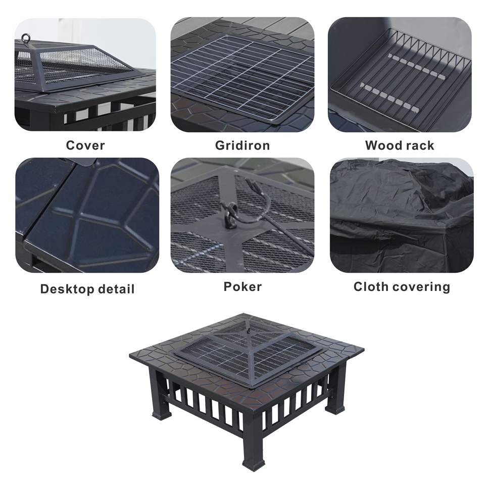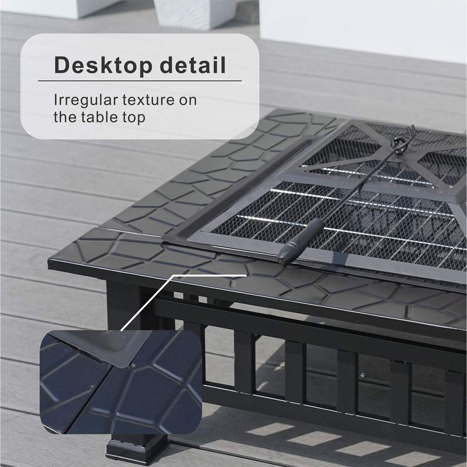 Mesa de Fogata Db de Acero para Exteriores, con Quemador de Leña, Independiente, con Recubrimiento en Polvo Negro Gris D0100H50UTP