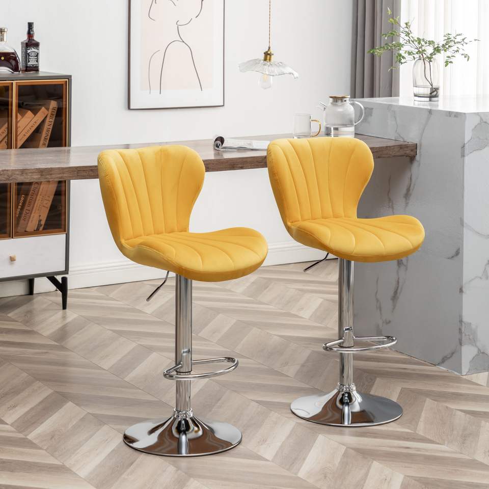 DB Ellston Taburetes giratorios ajustables tapizados amarillos de diseño simple Juego de 2-para Club de granja o barra de metal