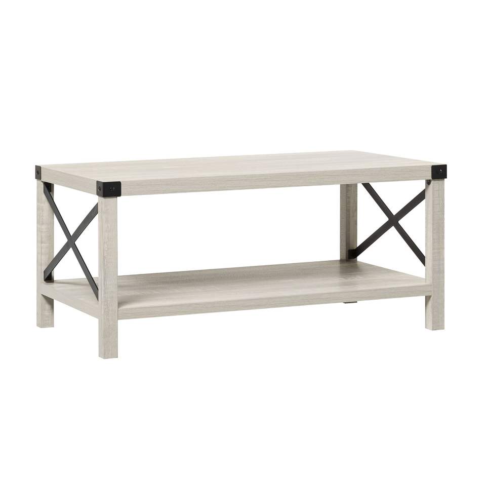 DB Farmhouse Metal-X Mesa de café/té convertible Muebles de sala de estar duraderos con parte superior de vidrio gris piedra y estante inferior