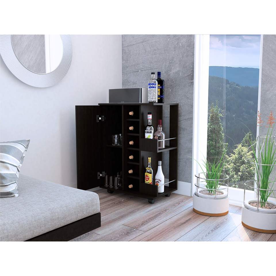 Carrito de barra de cuatro ruedas DB con islas y carros de cocina con acabado de Wengue negro