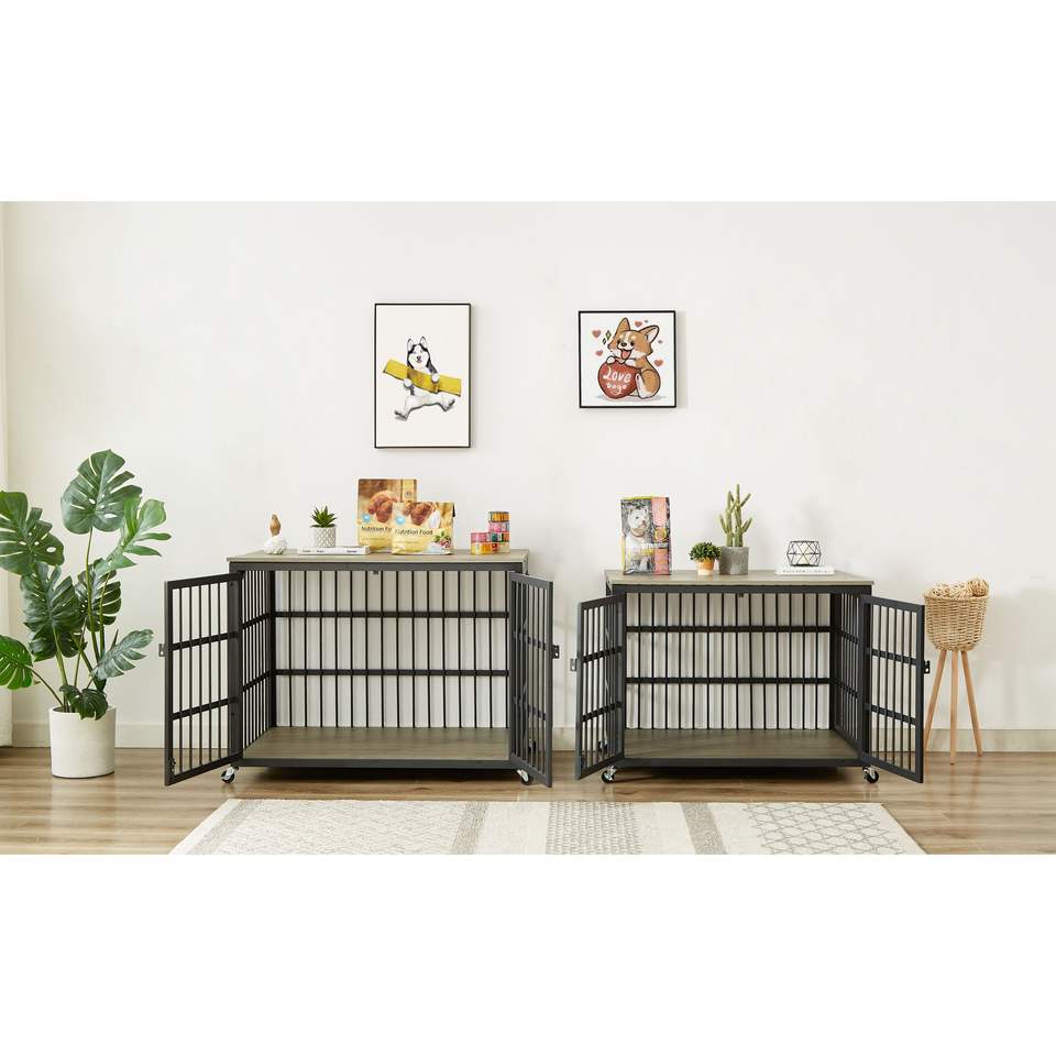 Caja de perro estilo muebles DB Marco de hierro forjado con aberturas laterales 43,3 ''W X 29,9' 'D X 33,5 ''H Casa de perro gris/puerta de casa para mascotas