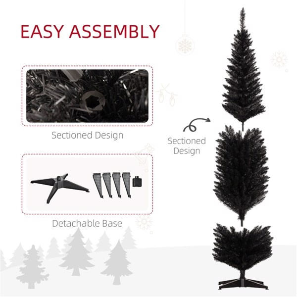 Árbol de Navidad Artificial de Pie, Ecológico, para Interiores, Sin Luces, Negro, 7 Pies
