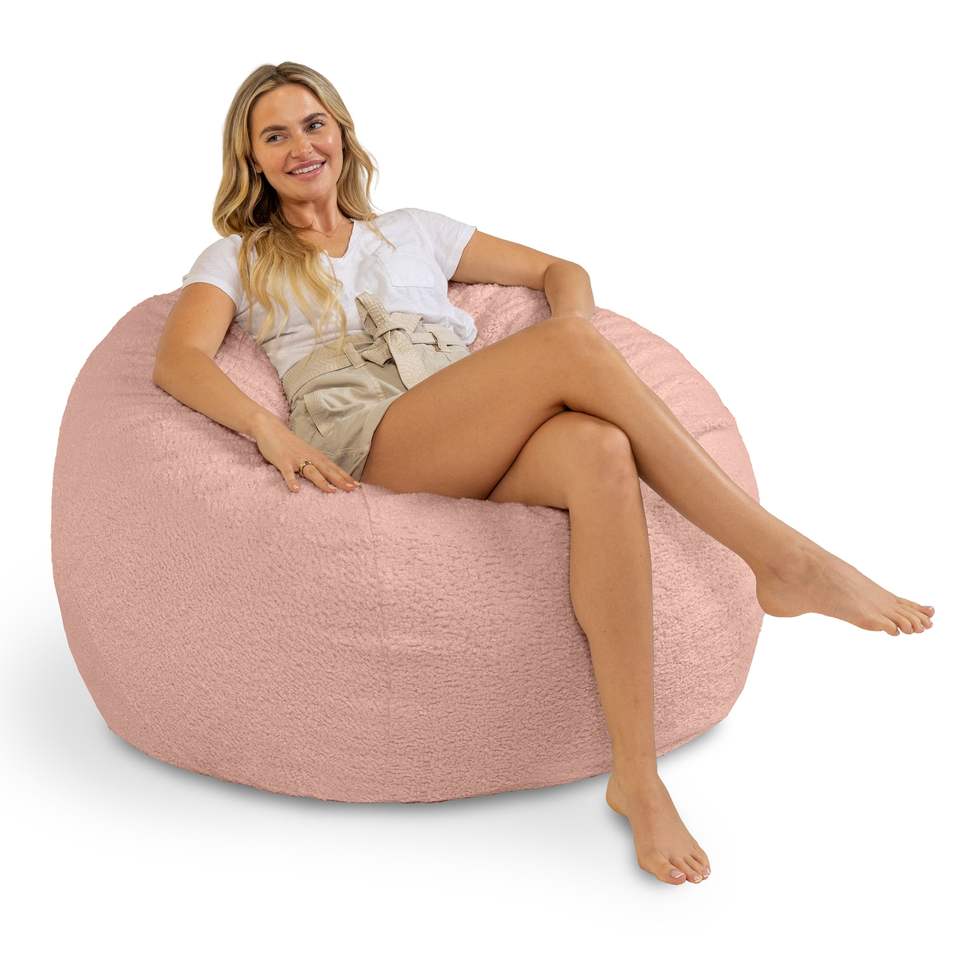 DB Jaxx Saxx Grande 4 Ft Round Bean Bag Sofá Shearling Faux-Cordero Material Disponible en Rosa