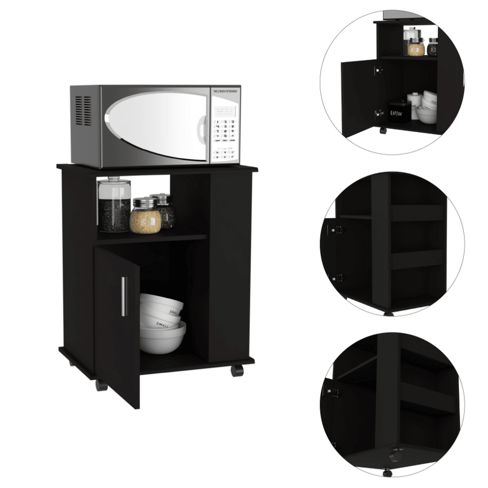 Carro de cocina DB Gabinete de microondas inferior moderno de una sola puerta con tres estantes de madera laterales Estilo de panel negro