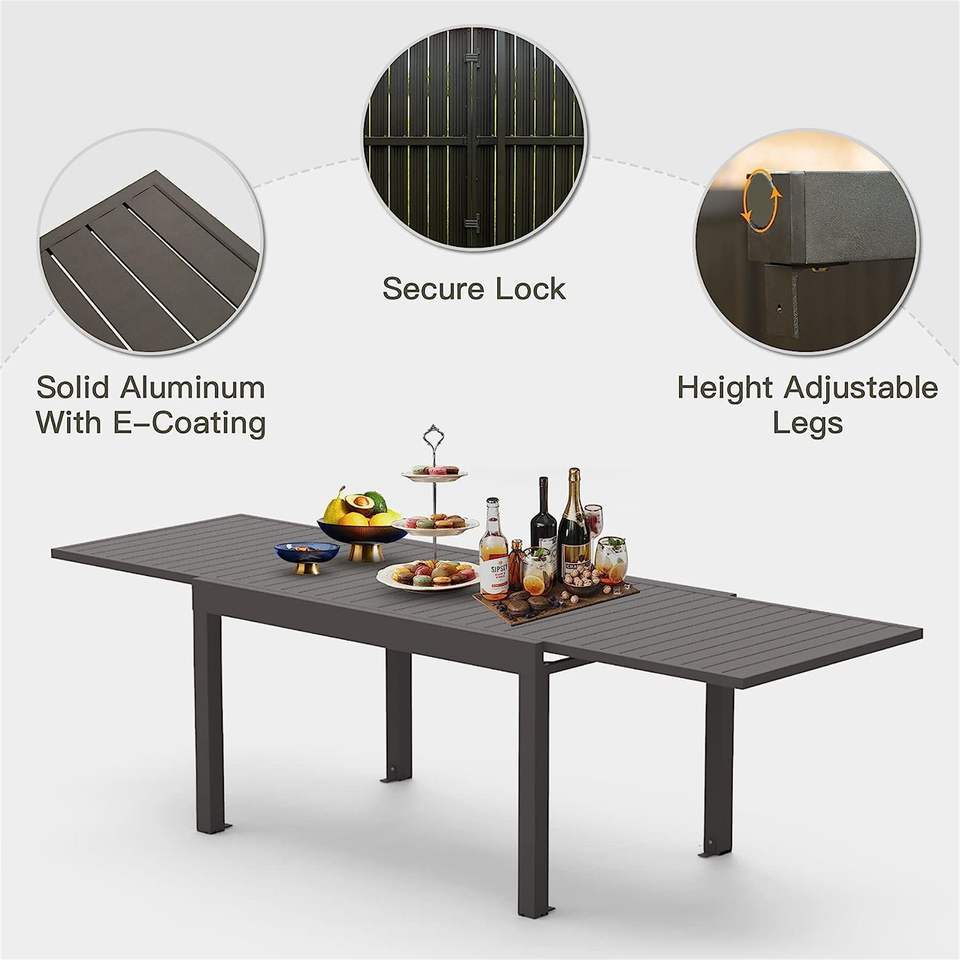 DB Mesa de comedor de patio de metal de aluminio extensible grande 53 "-106" ajustable 6-8 personas Rectangular interior muebles de exterior