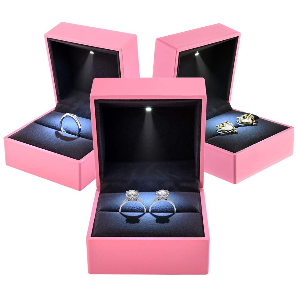 Caja de Anillos LED DB, Exhibidor de Joyería de Plástico en Forma de Corazón con Luz para Vitrinas de Joyería