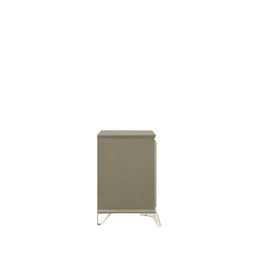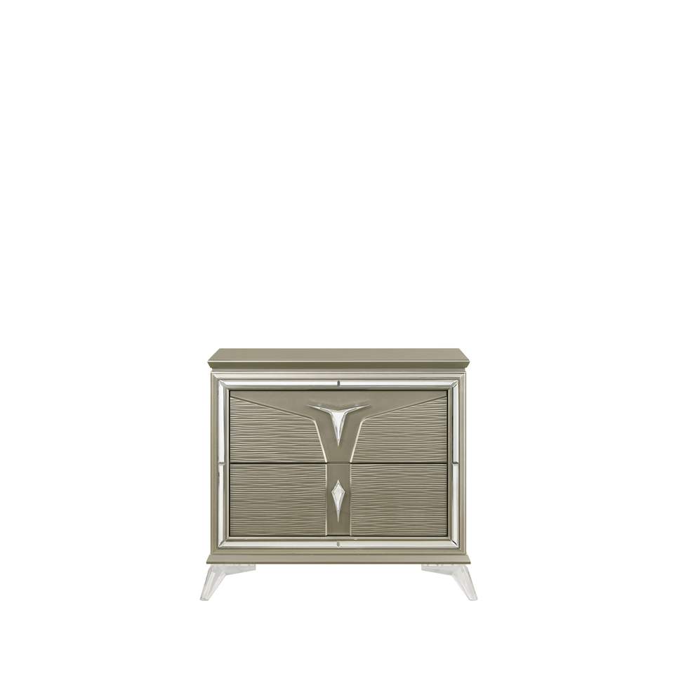 Mesita de noche de 2 cajones de estilo nórdico y lujoso DB, madera de acacia y pino moderna con detalles espejados para apartamento o dormitorio