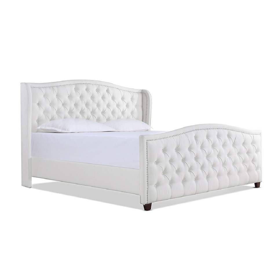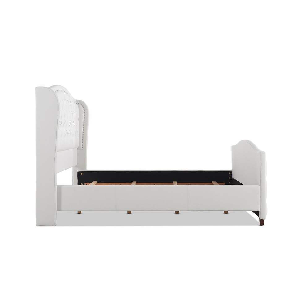 Juego de cama tamaño King suave DB Marcella con cabecero de refugio tapizado blanco brillante Material de poliéster para muebles de dormitorio