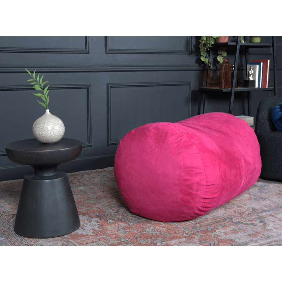 DB Michael 4 pies moderno fucsia PUF sofá silla gamuza diseño cilíndrico con relleno de espuma triturada para sala de estar