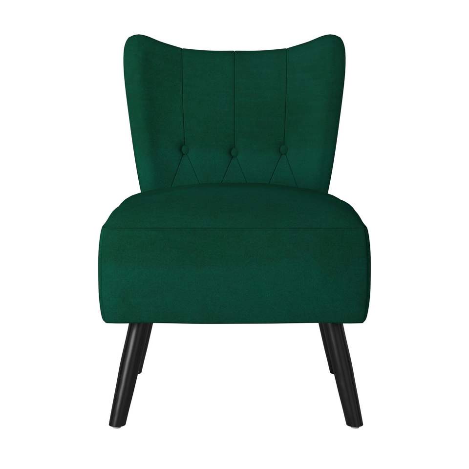DB Modern Home Furniture-Silla decorativa de terciopelo verde con botones-Parte posterior con mechones Acabado marrón Patas de madera Estilo único para el hogar Oficina B