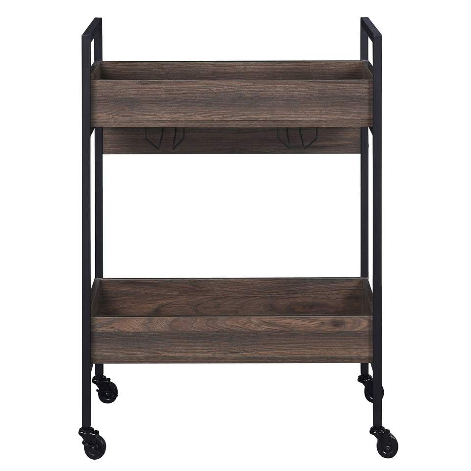 Carrito de cocina moderno DB Carro de servicio de madera maciza de nogal y negro con 2 estantes