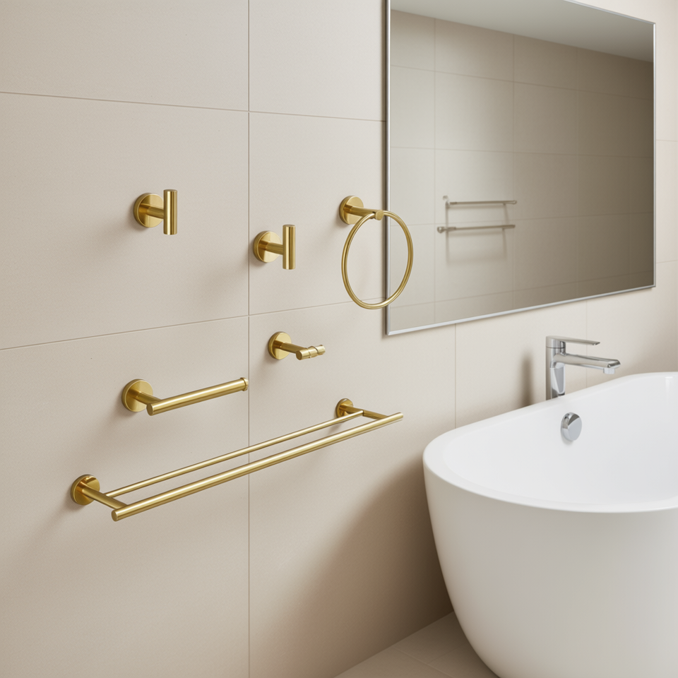 Juego de Toallero Moderno DB de 50-60 cm, Montaje en Pared, Acabado Espejo, Acero Inoxidable, Calentador Eléctrico, Accesorio para Baño