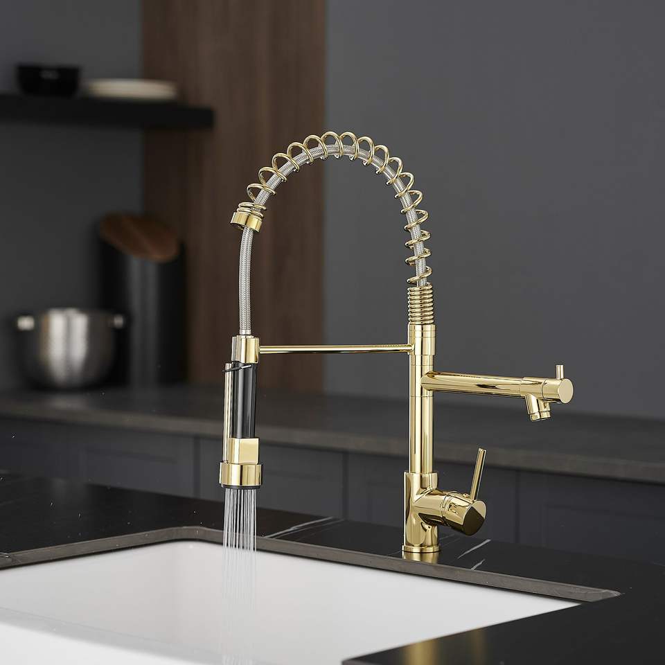 Nuevo grifo de cocina extraíble de una manija DB con acabado dorado