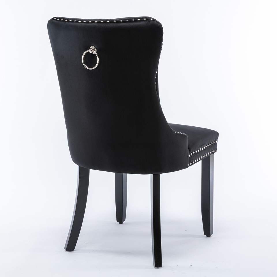Silla de Comedor Moderna de Alta Gama de la Colección DB Nikki, Tapizada en Terciopelo, con Patas de Madera Maciza y Detalles de Tachuelas