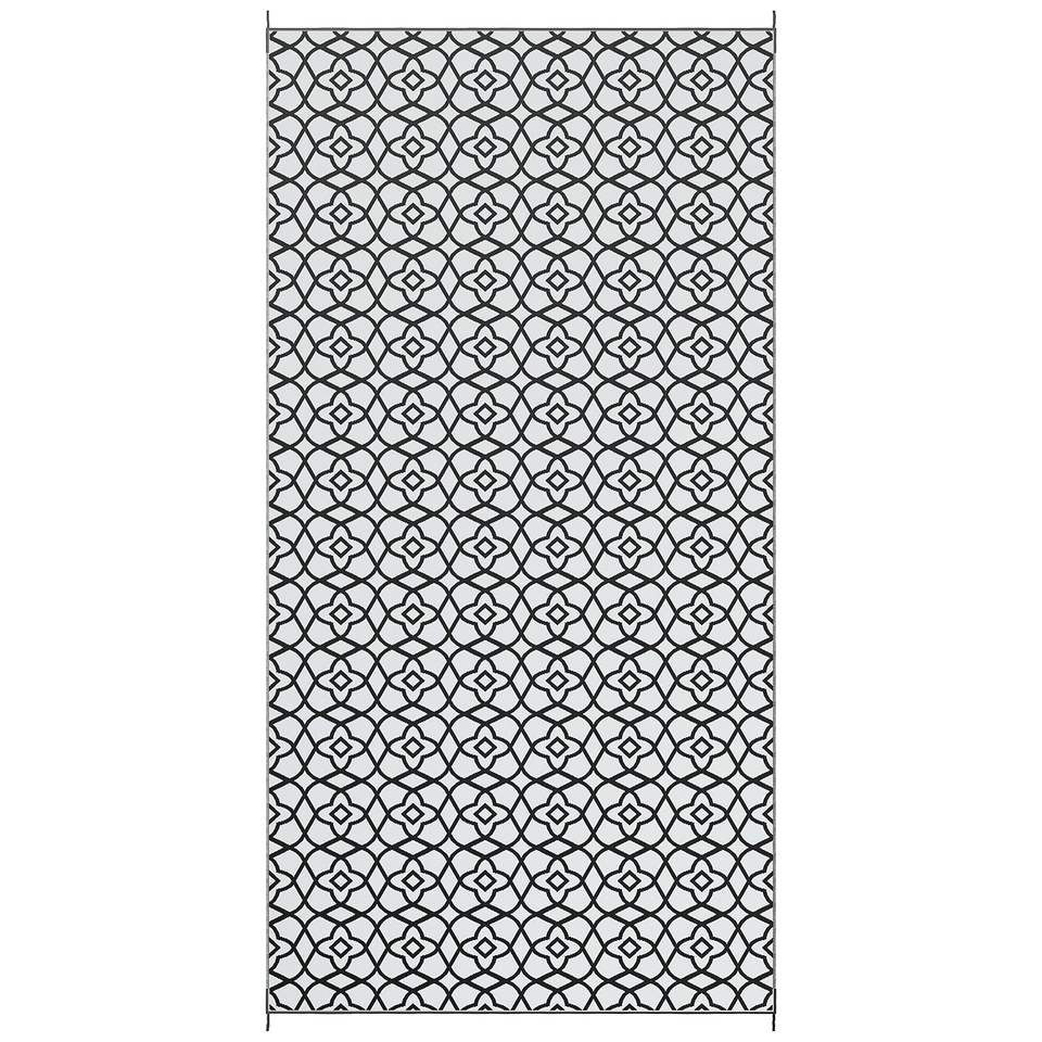 DB Venta caliente Reversible 9 'x 18' Alfombra portátil al aire libre Diseño de trébol blanco y negro para acampar RV