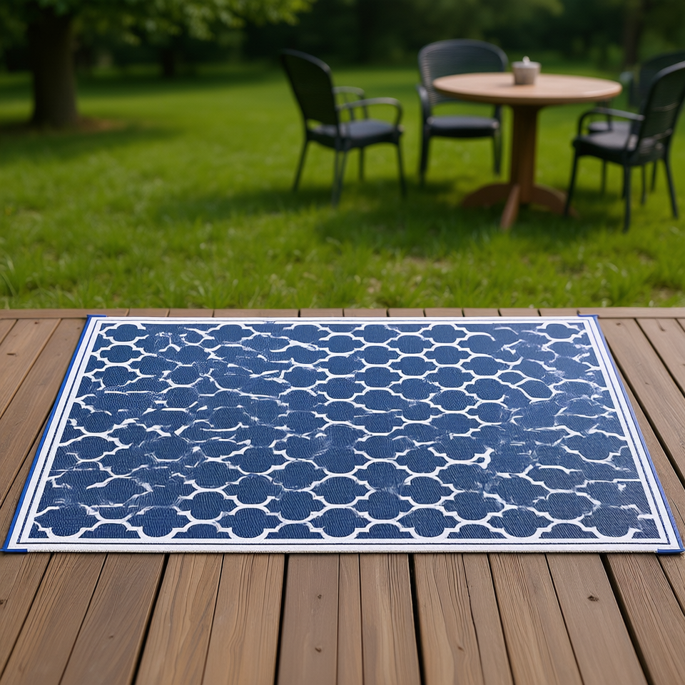 Alfombra Reversible para Exteriores Db, 9x18, Azul y Blanco, de Plástico y Paja, para Patio, Terraza o Jardín