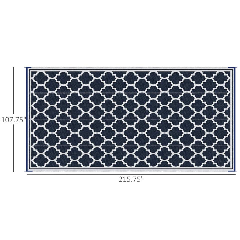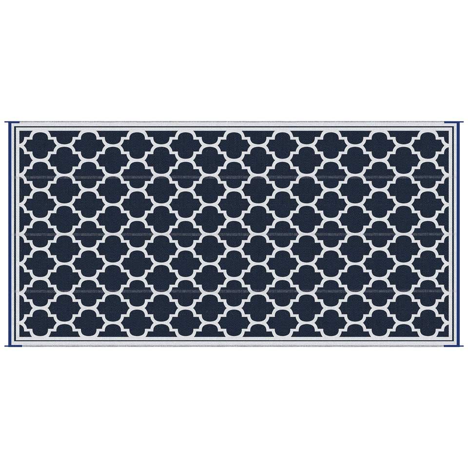 Alfombra Reversible para Exteriores Db, 9x18, Azul y Blanco, de Plástico y Paja, para Patio, Terraza, Picnic y Camping