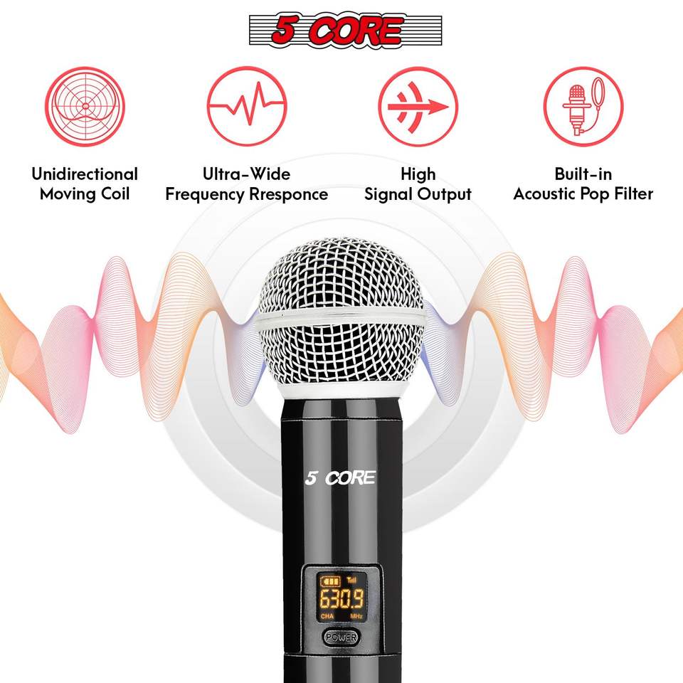 DB Professional 5-Core Wireless VHF Sistema de micrófono de mano Micrófono inalámbrico portátil para Karaoke