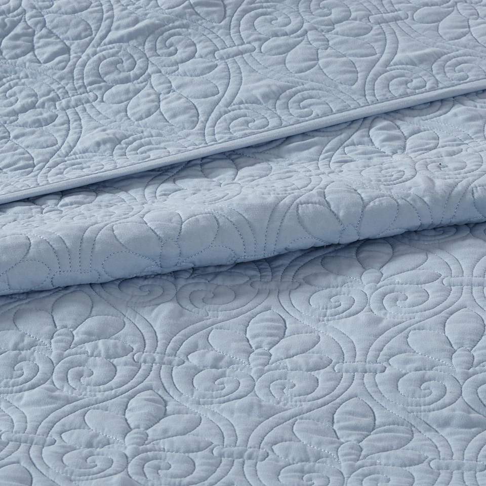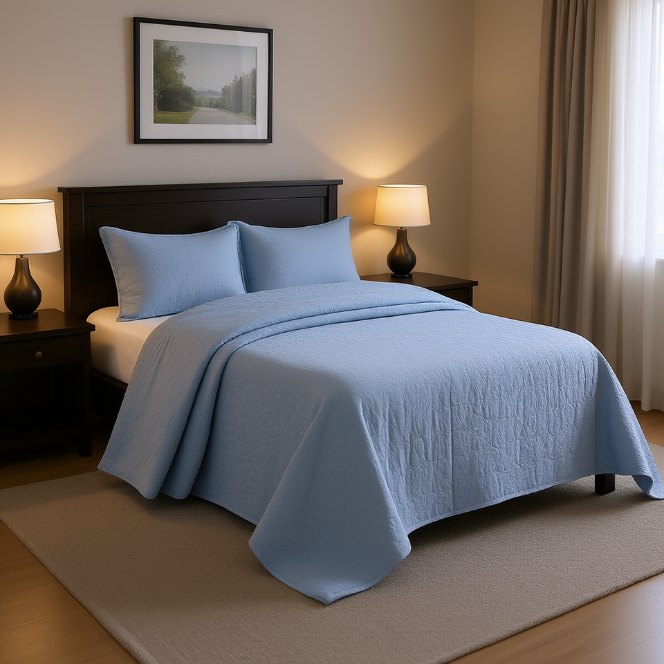 Juego de Cubrecama Reversible DB Azul Tamaño Queen, Acolchado Floral de Algodón y Poliéster para Uso Doméstico