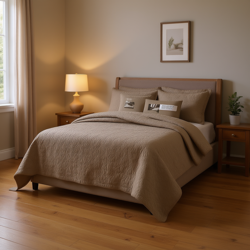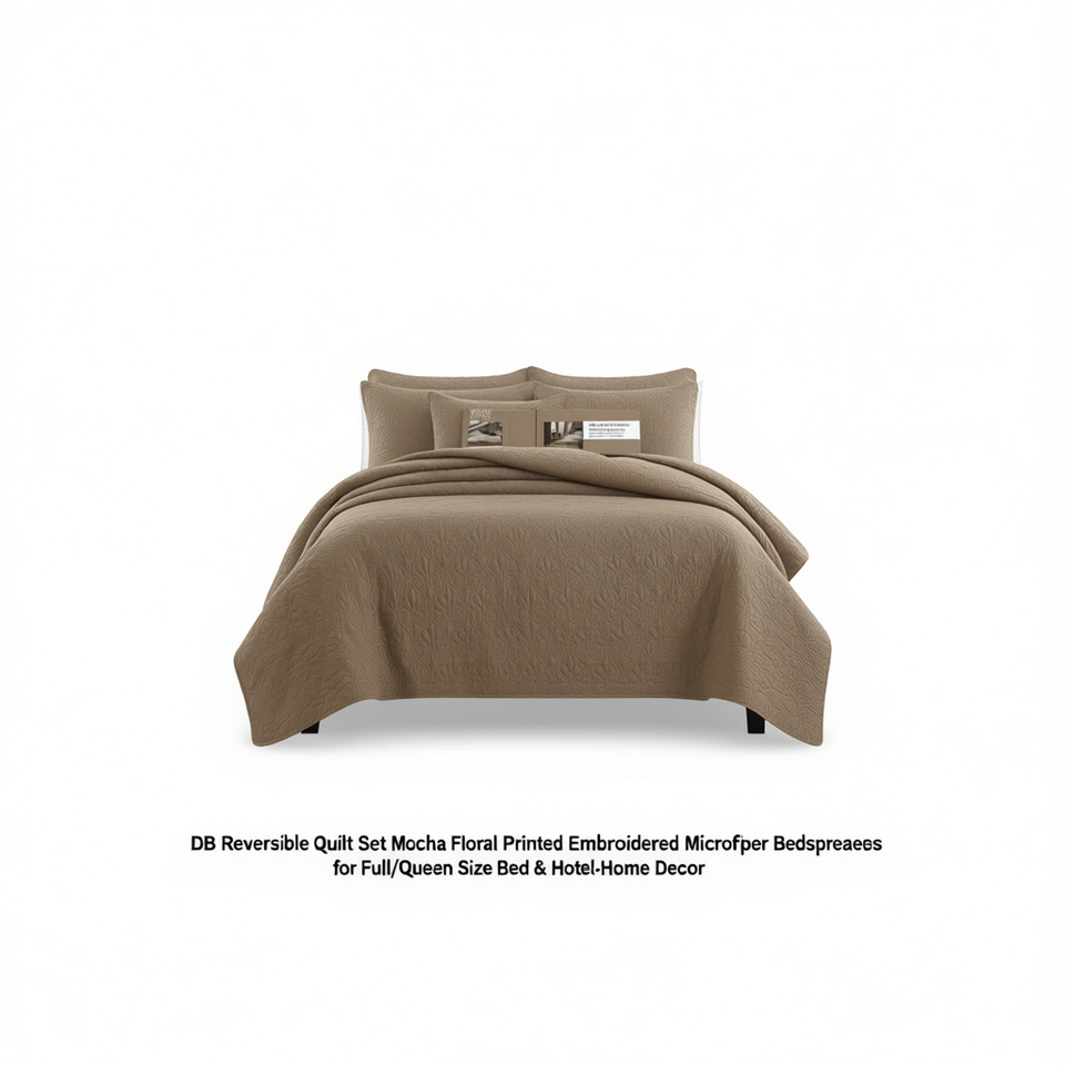 Juego de Edredón Reversible DB, Estampado Floral Mocha, Microfibra, Cubrecama para Cama Queen Size, Decoración para el Hogar y Hoteles