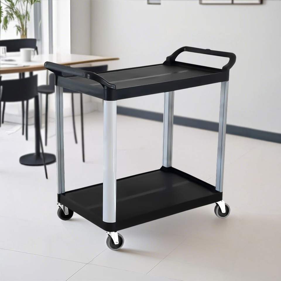 Carrito de cocina negro DB 2x de 2 niveles Carrito de comida portátil de diseño moderno con ruedas