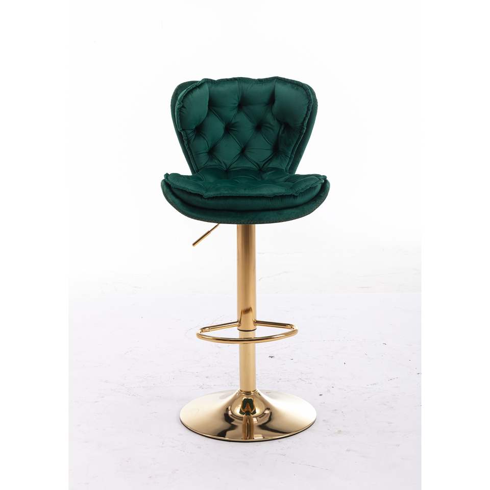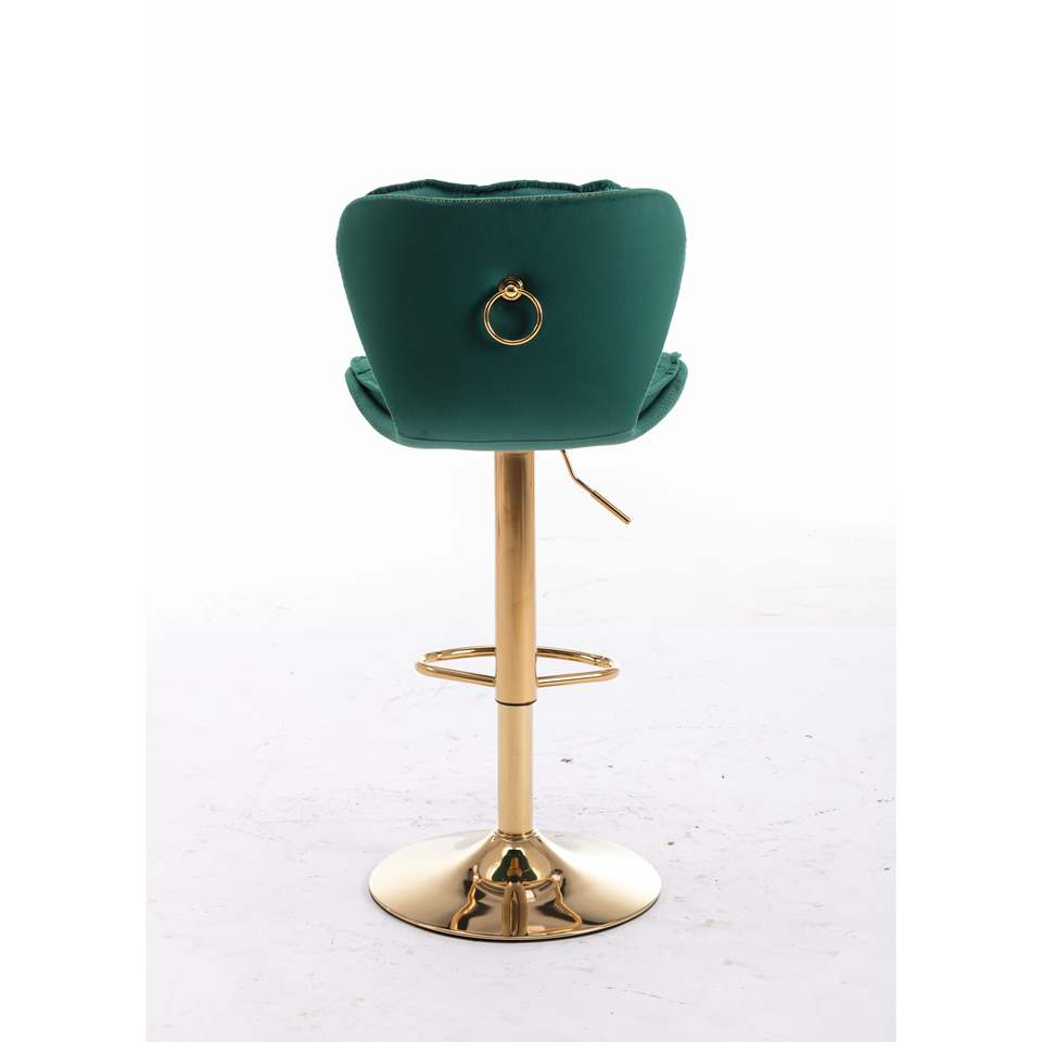 DB Set 2 Taburetes de Bar Giratorios de Altura Ajustable con Reposapiés Cromado y Terciopelo de Pata Dorada + Barra Simple para Aplicación de Eventos