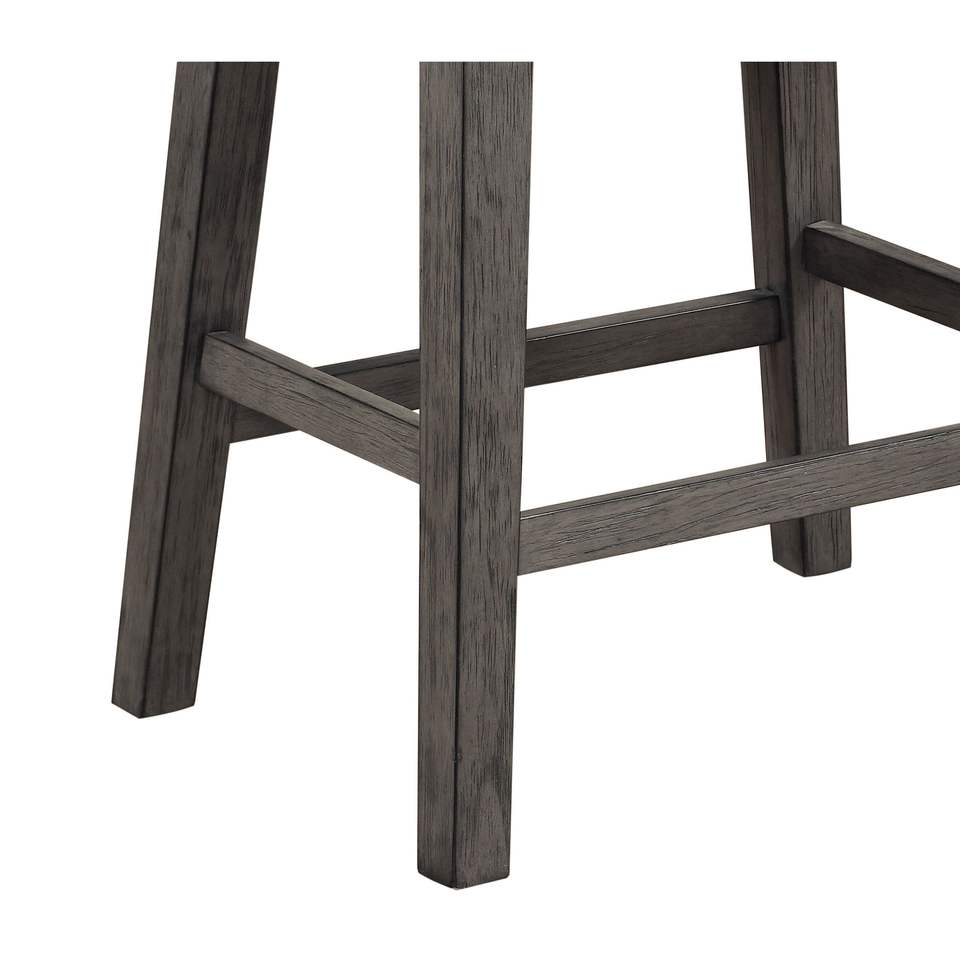 Juego DB de 2 taburetes de barra de altura de mostrador gris, asiento de piel sintética negra, embellecedor de cabeza de clavo, muebles de comedor informales contemporáneos, diseño Simple
