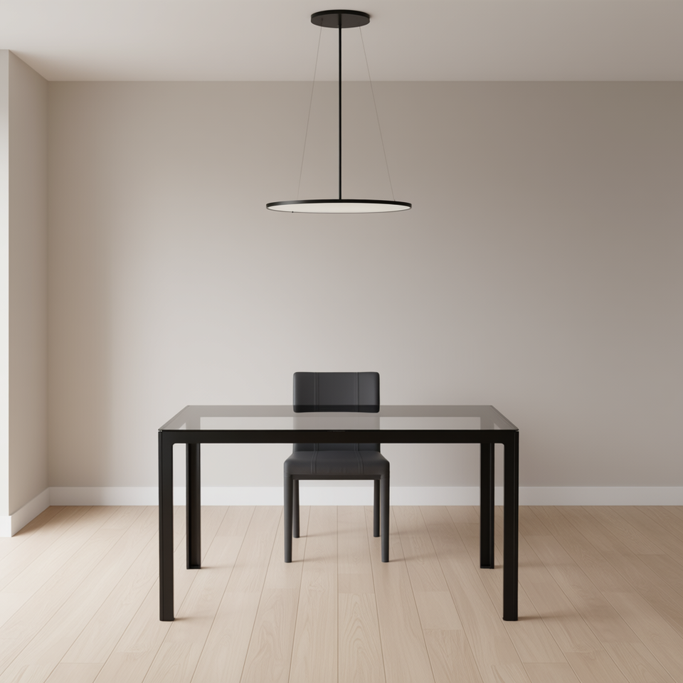 Mesa de Comedor Negra Simple DB, Vidrio Templado, Patas de Hierro, Rectangular, Diseño Moderno Minimalista, Muebles para el Hogar