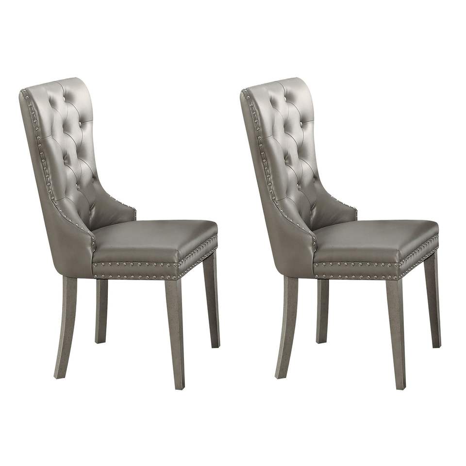 Juego de 2 Sillas Laterales Extensibles de Cuero PU Sólido DB, Color Champán, Estilo Farmhouse, Muebles para el Hogar