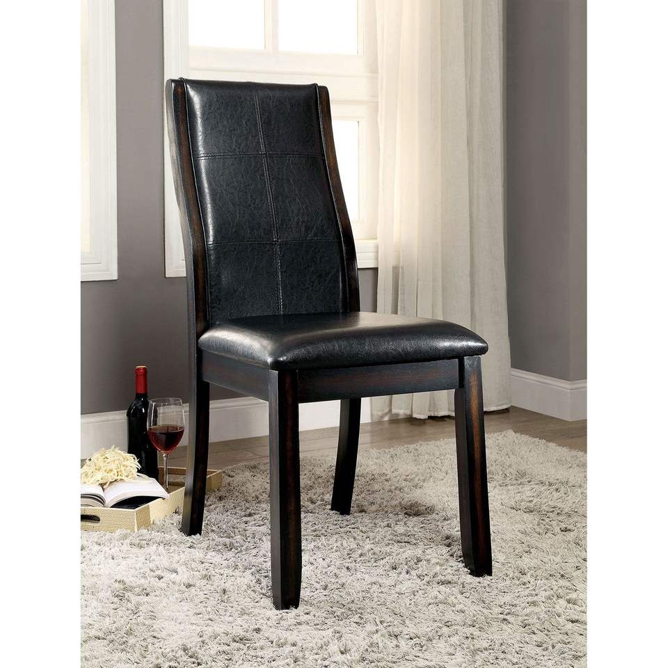 DB Transitional, 2 piezas, juego de sillas laterales de comedor de cereza marrón, respaldo curvo único, Espresso asiento acolchado de cuero sintético, solo sillas