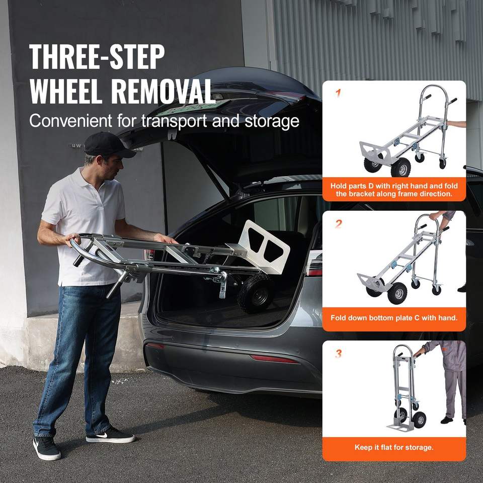 DB Wholesale 1000 Lbs Capacidad Camión de mano plegable de aluminio 2 en 1 Diseño Heavy Duty Industrial Plegable Dolly Cart para herramientas