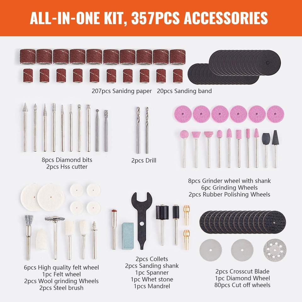 DB, venta al por mayor, 357 Uds., Kit de accesorios para herramientas rotativas, vástago de 1/8 \ "de diámetro, accesorio Universal, fuente de energía eléctrica