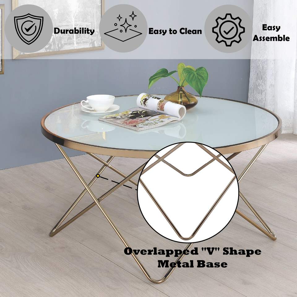 Mesa de centro de cristal esmerilado DB Valora y acabado champán