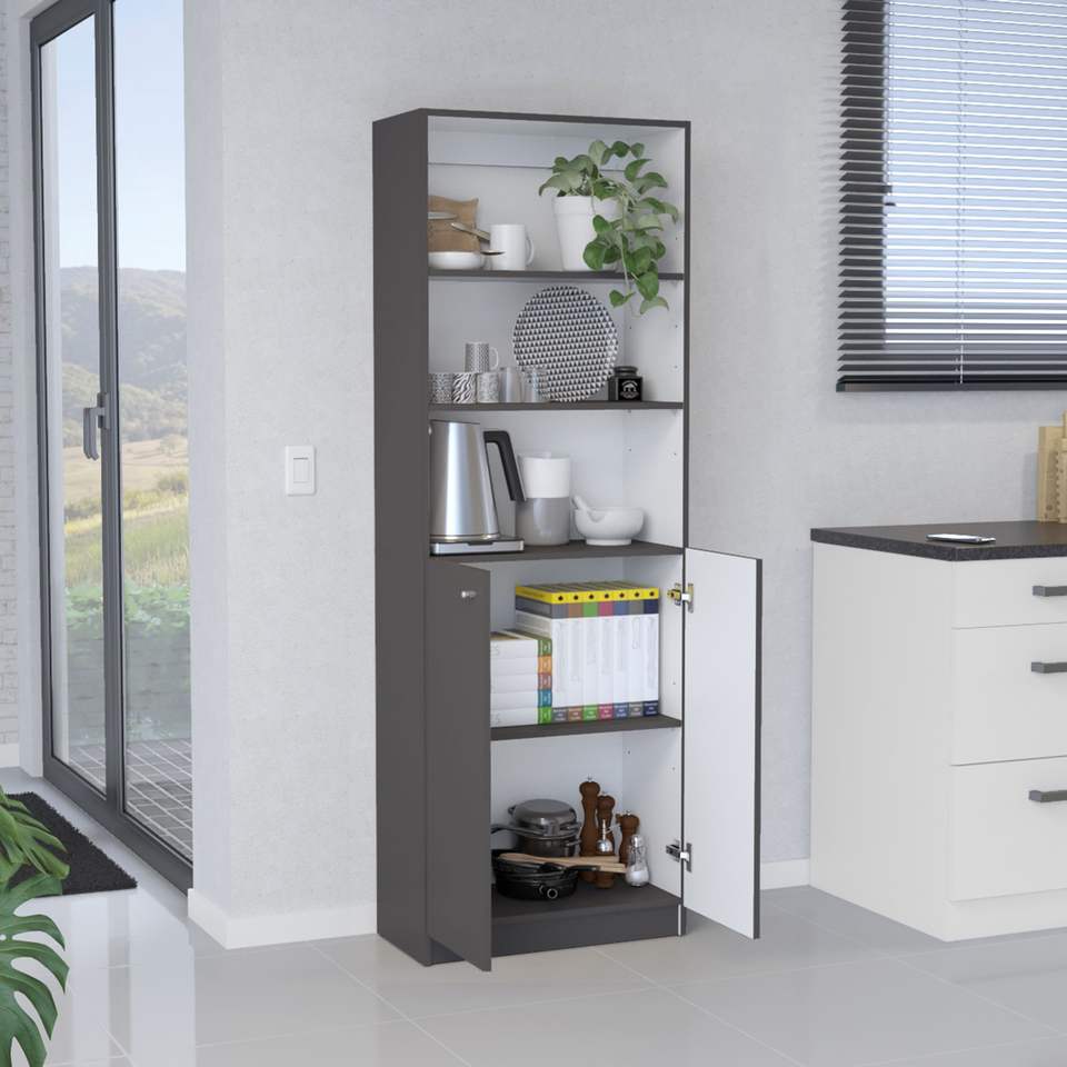 Librería DB Vinton de 2 puertas, estilo industrial, muebles de vidrio gris mate/blanco para el hogar, oficina y sala de estar con estantes superiores