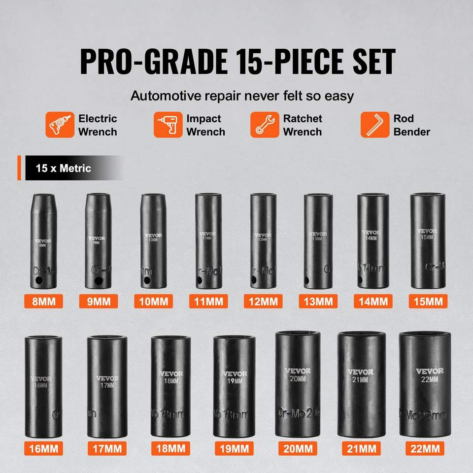 DB, venta al por mayor, 15 Uds., 6 puntos, 3/8 pulgadas, juego de enchufes de impacto, acabado cromado, Material Cr-Mo, llaves de grado DIY, OEM personalizable