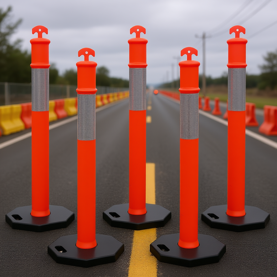 DB Wholesale Paquete de 5 Postes Delimitadores de Tráfico de PE Naranja de 44 Pulgadas con Banda Reflectante para Advertencia de Seguridad Vial