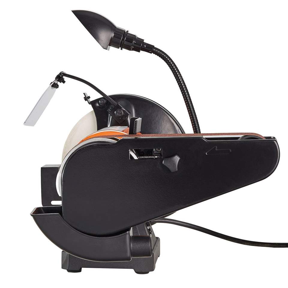 Amoladora de Banco Eléctrica DB Wholesale de 8 Pulgadas con Lijadora de Banda de 2 x 28 Pulgadas, Motor de Inducción de 2.5A para Fuente de Alimentación