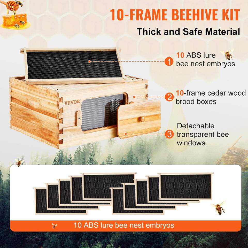 DB Wholesale Beehive Deep Box Starter Kit 100% Madera de cedro Natural recubierta de cera de abejas con 10 marcos para Apicultura