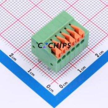 DB141R-2.54-6P-GN Spring Terminal Block Bent Lead Through Hole,P=2.54mm Connector 1x6P 2.54mm Green 6P