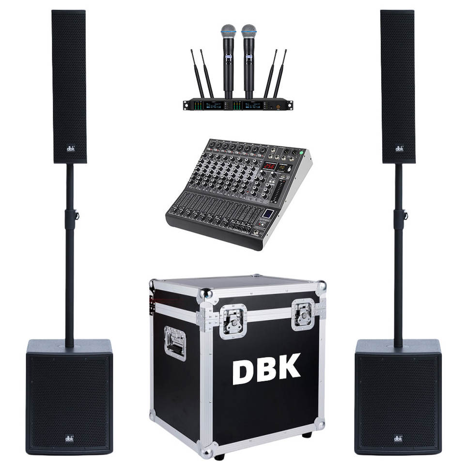 Altavoz de Columna DBK de 10x3.5 Pulgadas con Subwoofer Activo de 15 Pulgadas, Sistema de Altavoces PA, Equipo de Sonido DJ para Iglesia, Eventos y Fiestas