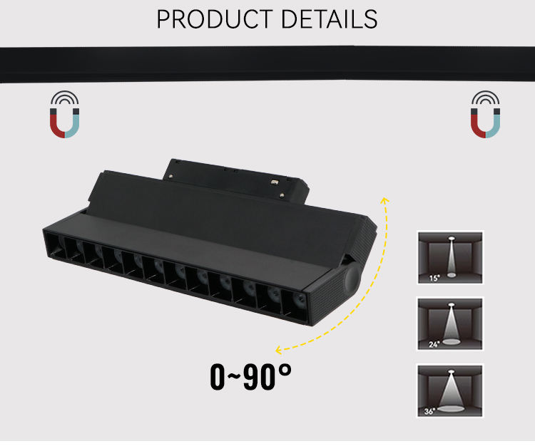 DC 24V 12W Sistema de luz de pista LED plegable 90 grados Inclinado 2700K-6500K Luz de pista magnética