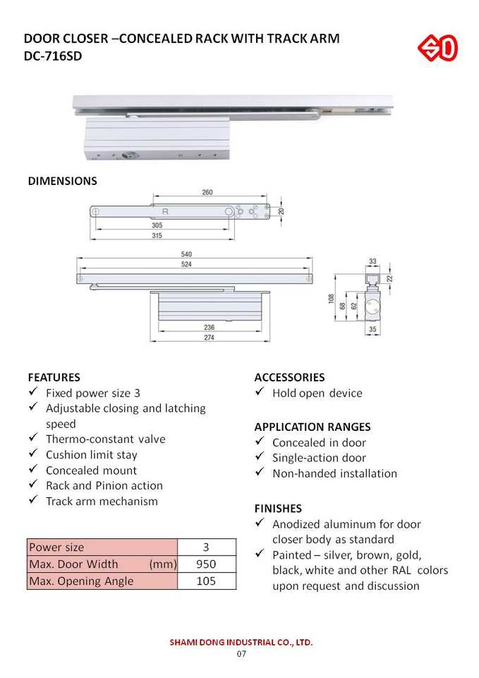 Product Name:DC-716SD DOOR CLOSER CONCEALED RACK WITH TRACK ARM