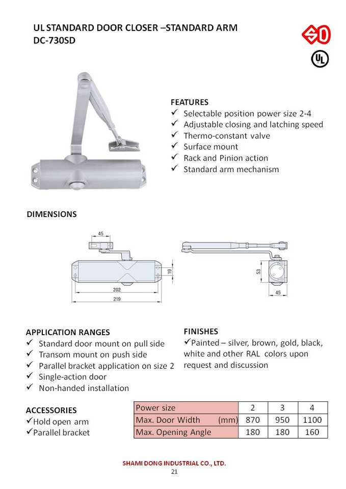 DC-730SD STANDARD DOOR CLOSER STANDARD ARM