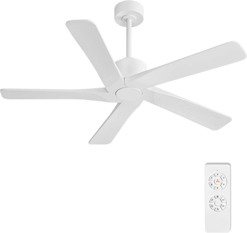 Ventilador de techo DC sin luz - 5 aspas de madera maciza tallada, motor DC reversible de 6 velocidades, ventilador de techo sin luces para sala de estar