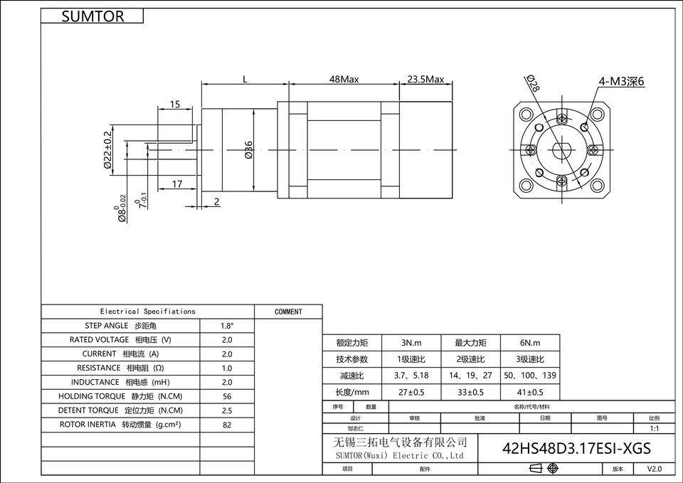 ElegirCelebración de Par: 0.56NM 42HS48EI-3.17-XGS3.71